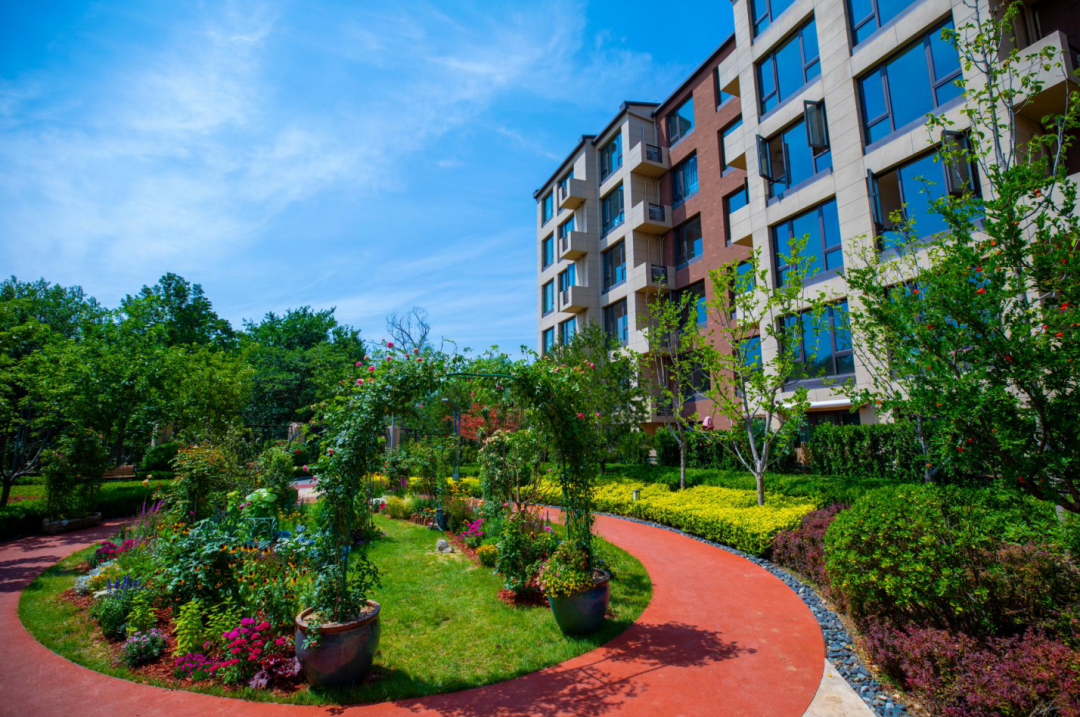 植被设计的最大考量,不单单作为可供观赏的风景,更重要的,是为了吸引长辈家人走出家门,在风景之中颐养。长辈们可以置身花团锦簇之中,或抬眼静看树影摇曳,或欣赏社群活动时的才艺展示;徜徉其中,偶遇热情的邻居,清风带来花香扑鼻,聊着聊着,就忘记了时间……在恭和家园,每个角落都有脚步流连,有欢笑停留。