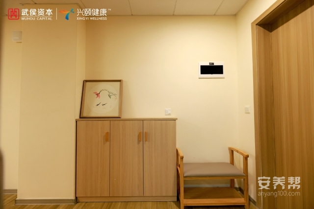 万兴颐养院,是武侯区国有平台公司武侯资本集团打造的一站式养老服务综合体,位于成都市武侯区万兴路125号;交通便捷(距离地铁3号线直线距离500米,距离万兴路公交站180米);配套完善,环境优美,项目总建筑面积11807.18㎡,独栋建筑,共7层,拥有地下停车场、独立院落及露台花园,餐厅,设置床位178张,均为双人间,每个房间都设有阳台。房间内配套进口品牌护理床、床头柜、衣柜、鞋柜、桌子、椅子、独立卫生间、洗手台、阳台。